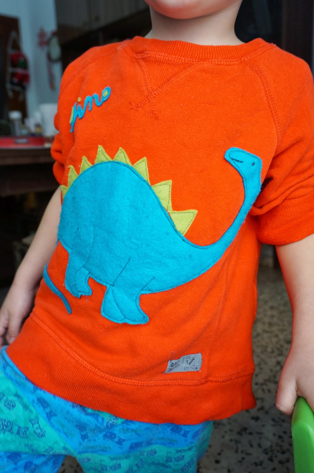 The first two days of the week I've been working on and off on summer blouse for Eva, which I made from an old t-shirt of mine. For some time it had been sitting on a chair in my bedroom, waiting to be used somehow. I found that I could easily cut old clothes and make something from them, but when it came to new fabrics I was very careful.